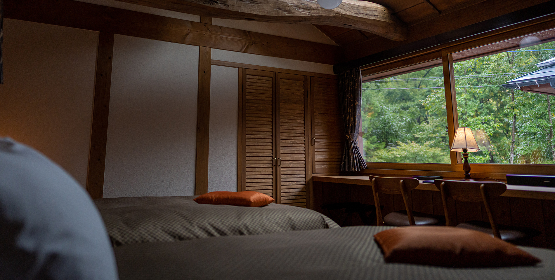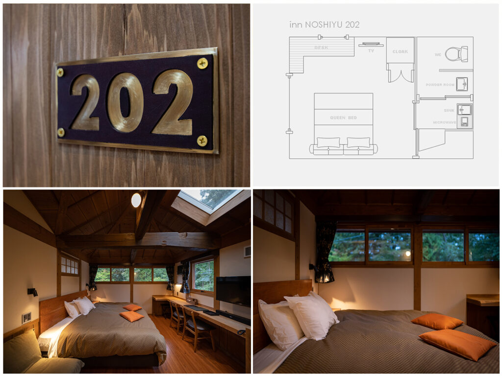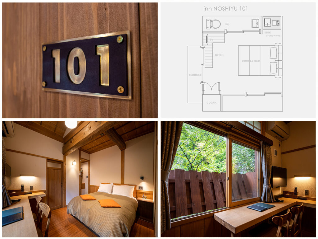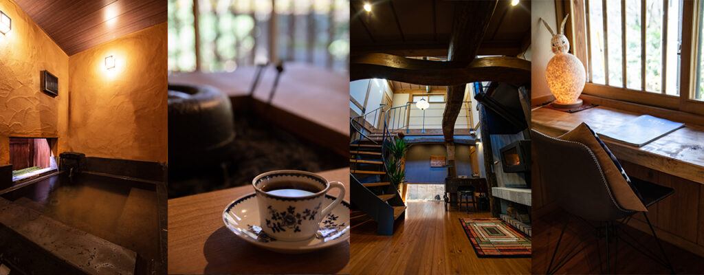 Bluetoothスピーカー、Wi-Fi、デスク、ミニキッチンをお部屋に完備。滞在中お好きな時間に利用できる貸切風呂あり。お宿「のし湯」の露天風呂とBar「NAYA」をご宿泊お客様はご利用できます。
